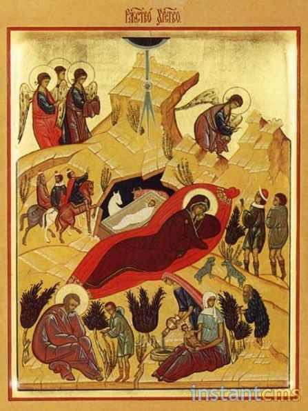 Рождество Христово Праздник Рождества Христова празднуется 7 января (нов. ст.) и имеет 5 дней предпразднства и 6 дней попразднства. Последний день предпразднства именуется Навечерием Рождества Христова или Рождественским сочельником. Проповедь в праздник Рождества Христова протоиерей Георгий Митрофанов Во имя Отца и Сына и Святого Духа! Праздник Рождества Христова для многих из нас в той жизни, которая, действительно исполнена многих скорбей, многих испытаний, предстает праздником светлым и радостным. Образ Божественного младенца, явившегося в этот мир, чтобы спасти его, кажется для нас залогом и нашего спасения. И это правда по существу. Но нередко бывает так, что форма праздника, его даже подчас иконографический образ, и особенно те многочисленные ассоциации, которые сопровождают именно этот праздник Рождества Христова, побуждают нас забыть о самой сути этого праздника, которая заключается в нашем спасении, но спасении, которому суждено было осуществляться всей будущей жизнью этого Божественного младенца, жизнью, которая уже тогда, в момент Рождества Христова стала осуществляться как служение, но служение именно крестное. Мир, в который для искупления его грехов пришел Спаситель, не хотел принять в свое лоно Христа. И Евангельское чтение, которое прозвучало на Утрени праздника Рождества Христова, неожиданно указало нам на эту весьма драматичную предысторию прихода в мир Спасителя. Ведь, действительно, олицетворявший всей своей жизнью праведность ветхозаветной Церкви Иосиф Обручник в какой-то момент оказался перед страшным искушением: искушал его дьявол; искушал его, может быть, самым страшным искушением: он его искушал его же собственной праведностью. Приняв в жены воспитанную при храме девушку, еще практически отроковицу, праведный Иосиф узнал, что она беременна, то есть узнал то, что по законам ветхозаветной Церкви должно было побудить его отринуть свою юную жену как блудницу, отдать ее первосвященникам, законным учителям, которые изрекли бы над ней свой приговор: ее должны были побить камнями. И зачинателем этого предписанного законом акта праведного наказания должен был выступить праведный Иосиф во исполнение правды всей ветхозаветной Церкви. Здесь перед нами одна из первых коллизий между Ветхим и Новым Заветом. Наверно, праведный Иосиф не мог в полной мере вместить в себя то, что могла сказать ему Богородица о том, что Младенец во чреве ее - не плод блуда, а чудесно данный ей по благодати Святого Духа Спаситель, Мессия. Вряд ли мог поверить даже праведный Иосиф в истину этих слов, вот почему понадобилось новое откровение: откровение во сне, когда Ангел явился к Иосифу и сказал ему о том, что его юная жена, действительно, носит у себя во чреве чудесного Ребенка, Мессию. Мы можем задаться вопросом: а как бы было хорошо, чтобы нам хотя бы в Рождественскую ночь было дано какое-то подобное откровение, чтобы все терзающее нас, искушающее нас ушло, и Ангел возвестил бы нам некую высшую правду. Но редко с кем даже в Рождественскую ночь происходят подобного рода чудеса, потому что редко кто, подобно праведному Иосифу, еще до прихода в мир Христа становится христианином, а он стал таковым христианином, ибо Евангелие указывает нам на то, что еще до того, как ему явился Ангел, великий ветхозаветный праведник решил нарушить Ветхи
